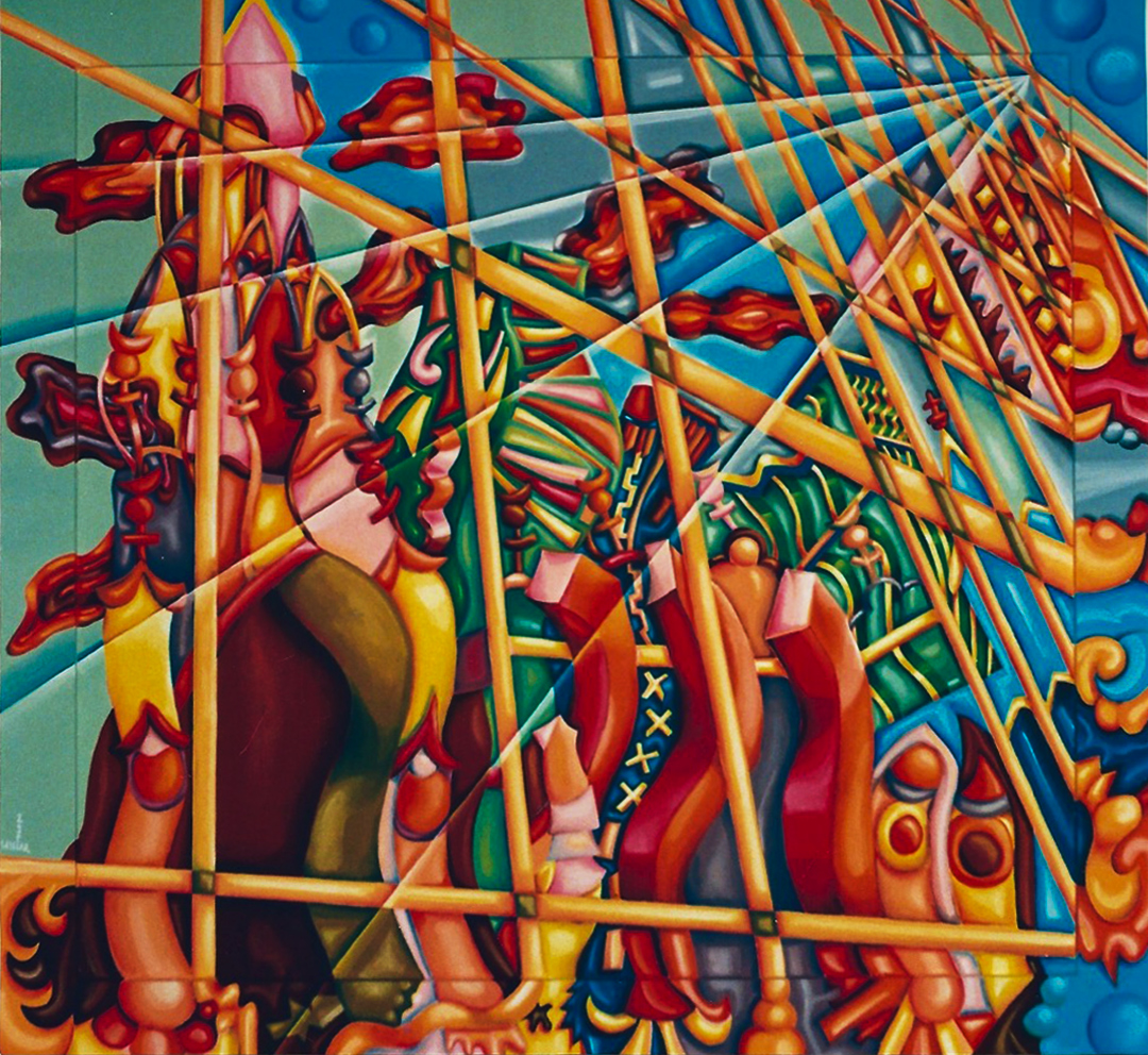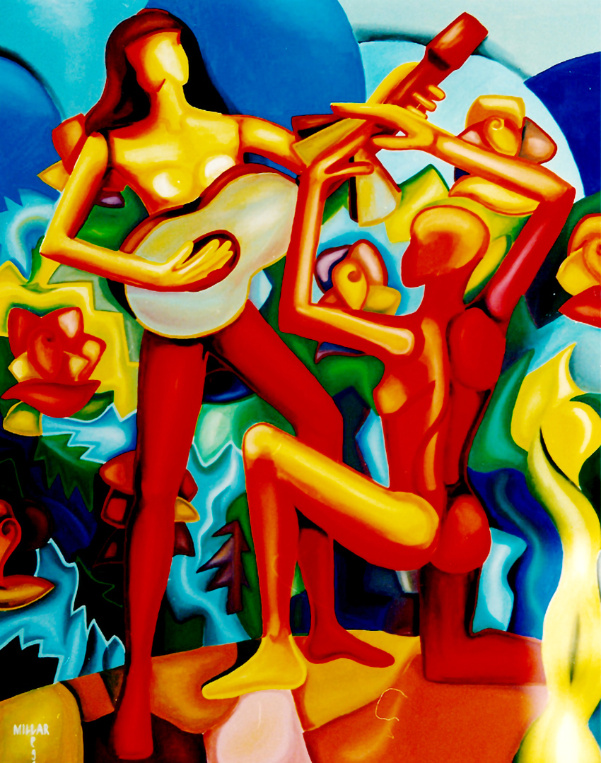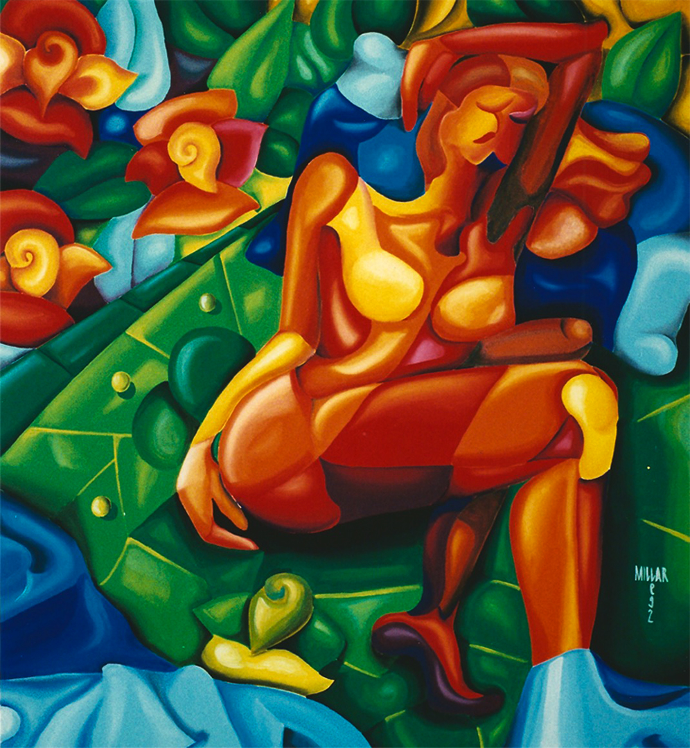 L’opera di Beatriz Millar indaga la relazione tra corpo e colore, sospesa tra luminosità e ombra. Le figure femminili, plastiche e fluide nella loro trasformazione, si collocano in un dialogo con l’eredità del Futurismo, tra dinamismo e tensione formale.