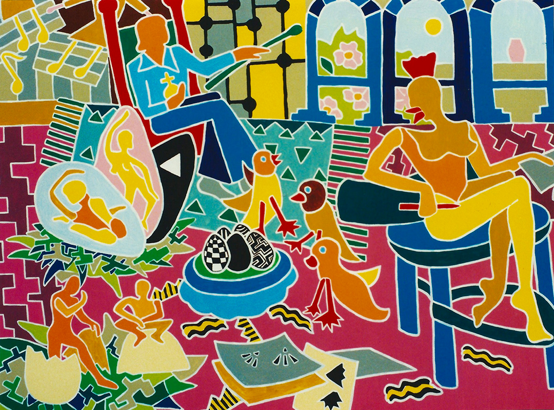 Il ciclo della linea bianca nasce dal desiderio di dare valore a ogni elemento dell’opera. Corpi piatti, privi di plasticità, convivono con oggetti semplici del quotidiano: un fiore, un gatto, un tavolo. Tra loro, lo spazio vuoto mantiene lo stesso peso e lo stesso respiro.